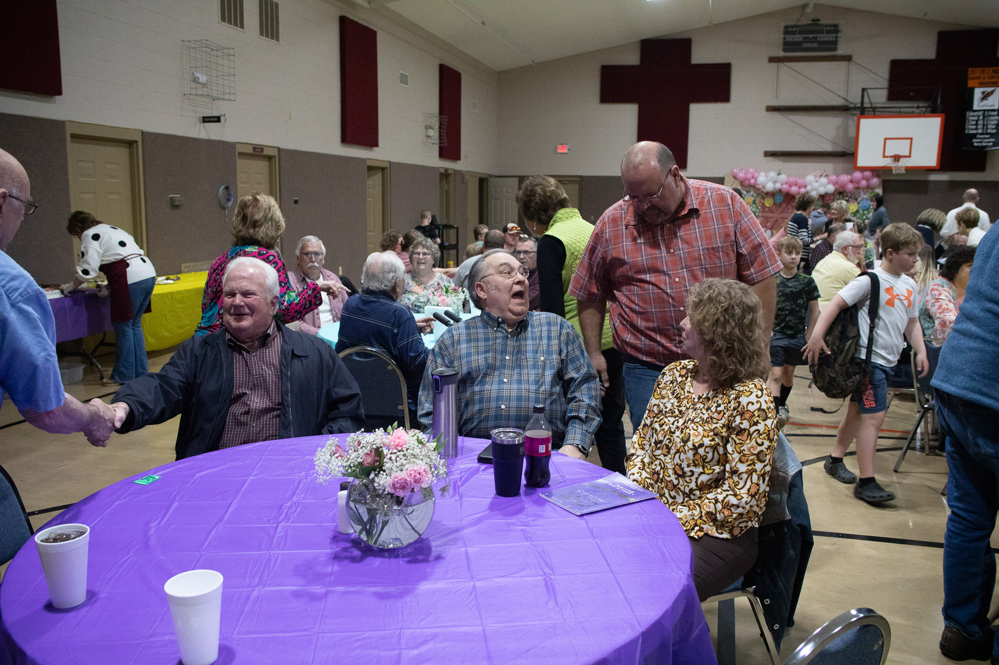 Tab Titsworth teaches these senior saints using a quarterly Sunday School book.